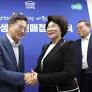 인사하는 김동연 경기도지사와 이길여 총장 3일 경기도 성남시 가천대학교에서 열린 '천원 매점' 개소식에서 김동연 경기도지사와 이길여 가천대 총장이 인사하고 있다...