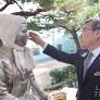 (서울=뉴스1) = 정근시 서울시교육감이 5일 평화의 소녀상 철거 집회를 예고한 서울의 한 고등학교를 찾아 소녀상에 털모자를 씌어주고 있다. (서울시교육감 제공.