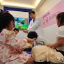 장성군보건소 황윤빈 공중보건의가 심폐소생술 체험장을 방문한 성모유치원 어린이들에게 심폐소생술의 방법을 알려주고 있다. 사진 김지운 기자.