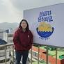 정여울 대표가 통영시 동피랑마을 입구에 있는 섬바다음식학교 간판 앞에서 포즈를 취하고 있다. /정봉화 기자. 정여울(35) 씨는 경남으로 순유입된 청년이다.