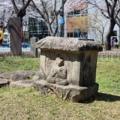 경주시청 인근 동천동 어린이공원 안에 자리한 경상북도 유형문화유산 '경주 동천동 사방불탑신석'. 놀이터와 벚꽃나무, 벤치가 있는 생활공간... 몸돌, 경북도 유형문화유산 '경주 동천동 사방불탑신석'이다.3일 정오가 지나서 찾은 현장의 어린이공원에는 시청 어린이집 유치원생들이 점심을 먹은 뒤...