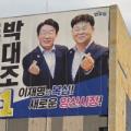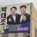 더불어민주당 이재명 대통령후보 정무특보단장 출신인 박대조(53세) 양산시장 예비후보가 15일 양산부산대학병원 인근 10층 건물에 대형 현수막을 걸로 양주동·범어·...