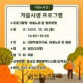 ▲ 가을사생 프로그램 안내 포스터-홍성군 제공 충남 홍성군 고암이응노생가기념관(이하 이응노의 집)은 오는 26일 오후 2시부터 4시까지, '가을사생... 이번 행사는 고암학술연구실 교육실과 이응노의 집 일원에서 진행되며, 행사 당일 참가자들은 고암이응노생가기념관의 교육실에서 간단한 사전...