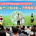 전북 장수군이 19일 한누리전당에서 '제40회 농업발전 다짐대회 및 가족체육대회'를 개최해 지역 농업인의 역량 강화와 소통·화합을 이끌었다고 19일... 장수군 후계농업경영인 가족 체육대회[사진=장수군]2025.06.19 gojongwin@newspim.com 행사는 기초역량 강화교육을 시작으로 개회식, 우수 농업경영인 표창...