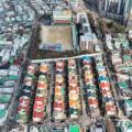 방탄소년단(BTS) 컴백 공연을 이틀 앞둔 19일 부산 북구 만덕 레고마을의 알록달록한 지붕들이 줄지어 있다. 뒤로는 정국이 다녔던 백양중학교가 보인다. 만덕 레고마을은 BTS 멤버 정국이 어린 시절을 보낸 곳으로 국내외 팬들 사이에서 성지순례 명소로 꼽히고 있다. 2026.3.19/뉴스1