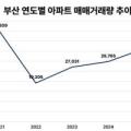 부산 아파트 매매거래량이 3년 연속으로 상승하며 4년만에 3만 건을 회복했다.23일 한국부동산원 자료에 따르면 부산 아파트 매매거래량은 지난해 3만6291건을 기록...