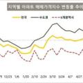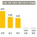 39%), 중구(0.35%), 송파구(0.31%) 순으로 아파트 가격이 상승했다. 반면 노원구(-0.03%), 금천구(-0.01%), 도봉구(-0.01%)는 하락했다. KB부동산은 "서울에서... 울산(0.02%)만 상승했고, 광주(-0.06%), 대전(-0.08%), 부산(-0.09%), 대구(-0.11%)는 하락을 지속하고 있다. 행정수도 이전 가능성이 높아진 세종(0.37%)은...