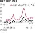 부동산원 관계자는 “관망세가 이어지고 있다”면서도 “재건축 추진 단지와 학군지 등에선 매매 가격이 계속 상승 중”이라고 말했다. 경기도 비슷한 흐름이었다. 오름폭은 줄었지만 과천(0.34%→0.22%), 성남 분당(0.47%→0.19%), 안양 동안(0.26%→0.18%), 하남(0.17%→0.14%) 등 선호 지역은 상승률이...