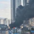 하늘로 치솟는 검은 연기…아산 타일 판매장 화재