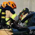 차량 창문 뜯어내는 소방관들