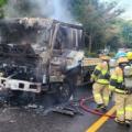 20일 제주도 소방안전본부에 따르면 이날 오후 3시46분께 제주시 아라일동 인근 산록북로를 달리던 5t 트럭에서 불이 났다는 신고가 접수됐다. 당시... 불은 신고를 받고 출동한 119에 의해 10여 분 만에 진화됐으며 트럭 운전자가 화재 발생 즉시 대피하면서 인명피해는 없었다. 하지만 트럭이 불에 타는 등...