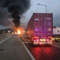 통영대전고속도로서 트레일러, 가드레일·중앙분리대 충돌 후 화재