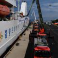 'APEC 2025 정상회의' 개최를 앞둔 2일 오후 경북 포항시 북구 영일만항에서 실시된 크루즈선 화재 진화 및 해상 인명 구조훈련에서 119대원들이 굴절차를 이용, 구조 작업을 펼치고 있다. 이날 훈련은 APEC 기간 동안 세계 각국 경제인들이 숙소로 사용할 크루즈선에서 화재가 발생한 것을 가정해 소방...