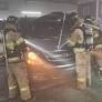 17일 오전 경기 수원시 홈플러스 영통점 지하 1층 주차장에서 불이난 스타렉스 앞에서 소방관들이 진화 작업을 벌이고 있다.(사진/경기도소방재난본부 제공) 오늘(17...