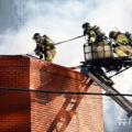 사다리차 타고 화재 진화하는 소방대원