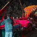 제설차량 들이받은 승용차 전소...운전자 병원 이송