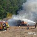 울진 벌목 목재 처리장서 굴착기 화재…엔진 과열 추정