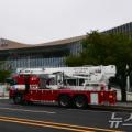 24일 APEC 정상회의장인 경북 경주시 화백컨밴션센터 앞 도로에 경주소방서 굴절차량이 화재 등 안전사고에 대비해 대기하고 있다. 2025.9.24/뉴스1