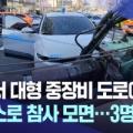 도로 위로 대형 중장비 '쾅'···3명 부상
