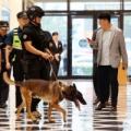 11일 광주 서구 한 백화점에서 경찰특공대 탐지견이 폭발물 탐색을 하고 있다. 경찰에 따르면 이날 오전 9시 30분께 '서구 롯데백화점'에 폭탄을 설치하겠다는 신고가 접수돼 동구에 위치한 롯데백화점과 서구 신세계백화점에 경찰특공대를 투입했다. 2025.8.11