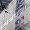 2025 강남구 안전한국훈련 긴급구조 종합훈련이 진행된 20일 오후 서울 강남구 코엑스에서 소방대원들이 드론을 활용한 화재 진압 훈련을 하고 있다. 2025.10.20. dahora83@newsis.com