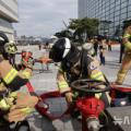 무역센터에서 전기차 화재 훈련...로봇 개·드론 투입
