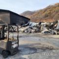 [청송=뉴스핌] 남효선 기자 = 5일 오전 3시19분쯤 경북 청송군 진보면 각산리의 한 농가 사과창고에서 화재가 발생해 출동한 소방당국이 발화 2시간10여분만에 진화...