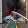 4일 오후 울산 울주군 온산읍의 한 산업용 배관 제작 공장에서 불이 나 소방대원들이 호스로 진화 작업을 벌이고 있다. 울산소방본부 제공...