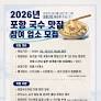 포항시가 해풍에 말린 쫄깃한 소면과 진한 바다 향을 담은 육수 등 포항만의 독보적인 국수 문화를 전국에 알릴 '2026 포항 국수맛집(포항 국수로드 10)' 발굴에...