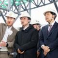 김민석(앞쪽 가운데) 국무총리가 25일 서울 도봉구 창동에 건설 중인 복합문화시설 ‘서울아레나’ 공사 현장을 점검하며 오기형(오른쪽) 더불어민주당 의원, 오언석(왼쪽) 도봉구청장과 이야기를 나누고 있다. 연합뉴스