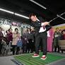 한눈에 보는 오늘 : 사회 - 뉴스 : 박강수 마포구청장이 4일 서울 마포구 빌리브디에이블에서 열린 파크골프경로당 '할카페' 개소식에서 스크린 파크골프 시타를 하고...