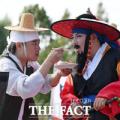 제18회 마포나루 새우젓축제가 17일 오전 서울 마포구 월드컵공원 평화광장 일대에서 열린 가운데 사또로 분장한 박강수 마포구청장(오른쪽)이 새우젓 감별을 재현하고 있다. 이번 축제는 전통을 담고, 사랑을 잇고, 지역을 살리는 축제라는 의미의 '마포 품多, 새우 담多, 축제 잇多'라는 슬로건 아래 모든...