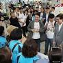 '2025~2026 강원 방문의 해' 홍보활동을 위해 11일 오후 김진태 강원도지사를 비롯한 강원홍보단 80여 명이 동해선 열차를 타고 부산을 방문해 부전역에서 박형준 부산시장과 강원도민회의 환영을 받고 있다. 2025.7.11