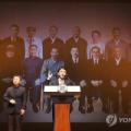 15일 강원 춘천문화예술회관에서 열린 제80주년 광복절 경축식에서 김진태 지사가 경축사를 하고 있다. 배경 화면은 강원지역 독립운동가들의 미소 짓는 단체 사진을 인공지능(AI)으로 구현한 사진. 2025.8.15