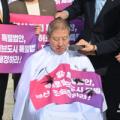 지난 23일 부산의 숙원 사업인 '부산 글로벌 허브도시 특별법'(부산 글로벌법) 통과를 요구하며 삭발 투쟁에 나선 박형준 부산시장이 부산 글로벌법의 국회 법제사법...