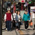 이필형 동대문구청장(가운데)이 수영장·보일러부터 노후 보행로까지 봄맞이 안전순찰을 위해 생활 밀착 안전점검에 나섰다. 사진은 휘경동 파전골목을 찾아 상인에게...