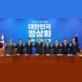 오영훈 제주도지사와 양병우 도의회 부의장, 임정은 도의회 운영위원장, 송창권 도의회 더불어민주당 원내대표, 김황국 도의회 국민의힘 원내대표 등 제주도·도의회 국비확보단은 17일 국회에서 더불어민주당 김병기 원내대표와 김병주 최고위원 등과 만나 2026년 제주 전국체전을 비롯해 1차산업 경쟁력...