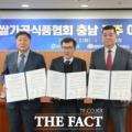 충남도는 2일 도청 상황실에서 김태흠 지사와 박병찬 한국쌀가공식품협회장, 최원철 공주시장이 '한국쌀가공식품협회 청사 이전을 위한 업무협약'을 체결했다고 밝혔다.[사진 제공= 충남도] 농림축산식품부 산하 유관 단체인 한국쌀가공식품협회가 공주시로 이전한다. 도는 2일 도청 상황실에서 김태흠...