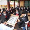 석전 당일 진설에 앞서 이방호 전교가 정성을 다할 것을 주문하는 인사를 하고 있다.예찬을 실은 가마가 대성전을 향해 이동하고 있다.이방호 전교가 초헌관 정종복 기장군수에게 파정 족자를 전달하고 있다.석전을 봉행하기 위해 명륜당 강학마당에 제관들이 서립해 있다.제집사자가 대성전 제향마당으로 가고...