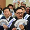 4일 오전 대구 중구 iM뱅크 중구청지점에서 전통시장 활성화를 위한 '설맞이 온누리상품권 구매 행사'가 열렸다. 이날 행사에서 류규하 중구청장과 중구의회 의원, 전통시장상인회, 중구 협의단체장 등 참석자들이 구매한 온누리상품권을 펼쳐 보이고 있다.