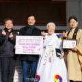 쌀 전달식에서 이승로 성북구청장(가운데)이 성북구민을 위한 지속적인 나눔을 실천하는 석복희씨에게 감사장을 전하고 함께 기념사진을 찍고 있다. 제공=성북구청 대한불교진각종 신도 석복희 씨(71세)가 올해도 서울 성북구(구청장 이승로) 취약계층을 위해 쌀을 기탁하며 이웃 사랑을 실천했다. 석 씨는...