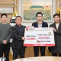 청조조기축구회 김순용 회장(왼쪽에서 두번째)이 김광열 영덕군수(가운데)에게 성금을 전달하고 있다.(사진제공=영덕군). (영덕=국제뉴스) 김충남 기자 = 영덕군(군수...