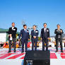 강기정 광주광역시장이 24일 광산구 세방전지 로켓플래닛에서 열린 '세방그룹 기부차량 전달식'에 참석해 인증패를 전달한 후 기념촬영을 하고 있다.