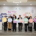 홍태용 경남 김해시장(가운데)이 2일 새해 첫업무를 시작하는 시무식에서 사전에 공지되지 않은 깜짝 청렴이벤트에 참여하고 있다.[사진=김해시] 2026.01.02 Bye-Five 캠페인은 직원 선정 조직문화 5대 과제(과도한 자료요구, 보여주기 업무, 지나친 의전, 형식적 회의, 사생활 간섭)와 결별하고, 간결 보고·실속...