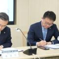 탁자 앞에서 류경기 중랑구청장을 포함한 두 명의 남성이 서류에 서명하고 있는 사진이다. 사진 상단에는 ‘협약식’이라는 텍스트가 있고, 그 아래에는 ‘장소: 류경기청 4층 기획상황실’이라는 텍스트가 있다. [헤럴드경제=박종일 선임기자]중랑구(구청장 류경기)가 고물가와 경기 침체로 경영에 어려움을...