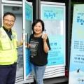 구청·동주민센터·경로당 무더위쉼터 142곳 운영 그늘막, 쿨링포그, 생수냉장고 등 주민보호 만전. 중랑옹달샘을 이용하는 류경기 중랑구청장과 주민의 모습.