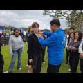 ▲ 김한종 장성군수가 지난 17일 전남 장성 축제 현장을 방문한 독일 학생 10여 명에게 '성장·장성' 기념 배지를 달아주고 있다. 장성 학생은 지난 8월 글로벌 인재캠프 일환으로 독일 현지를 6박8일 동안 방문했다. [독자 이승훈 제공] ▲ 김한종 장성군수가 지난 17일 전남 장성 축제 현장을 방문한 독일 학생...
