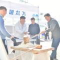 지난 15일 황룡면 팜파티 현장을 방문한 김한종 장성군수가 떡메치기 체험을 하고 있다. / 사진제공 = 장성군 장성군이 장성군친환경농업협회가 지난 15일 황룡면 '참자연 이파리농장'에서 '제1회 친환경 팜파티'를 열었다고 전했다. 도시민 100여 명이 참여해 ▲친환경 쌈채소 수확 체험 ▲친환경 농산물을...
