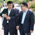 안호영 국회 환경노동위원회 위원장(왼쪽)이 2일 전북 익산시 왕궁 자연환경복원사업 관련 현장을 찾아 정헌율 익산시장과 대화를 나누고 있다. 2025.9.2/뉴스1