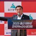 김두겸 울산시장이 4일 남구 태화강변 번영교 인근에서 열린 2025 울산 태화강 전국카누선수권대회 개회식에서 인사말을 하고 있다. 2025.09.04.bbs@newsis.com.